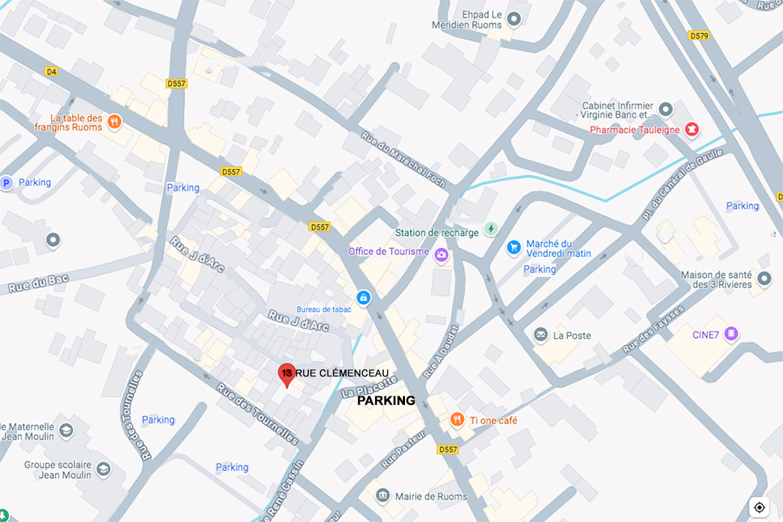 Notre maison est située rue Clémenceau, dans le quartier ceinturé par les remparts de Ruoms. Ce quartier est entièrement piétonnier en juillet-août. Vous accéderez à la maison par la porte sud (photo 3) après avoir laissé votre véhicule sur l'un des parkings gratuits. ( le parking La Placette est à 40m de la maison )